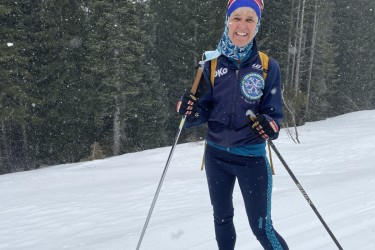 Barb started alpine skiing at the age of 10 in Minnesota where she grew up, then eagerly took up cross country skiing. She was an athlete on the Stillwater High School Team, where she caught the racing bug and never looked back. She attended both the University of Montana and Montana State University, where skiing played a big role in her life and became her community. After moving to Leavenworth to work as a Fisheries Biologist, she became a member of the Leavenworth Winter Sports Club. She was lucky enough that her office was right next to the Icicle River Trails and she could often be seen skiing on her lunch break.