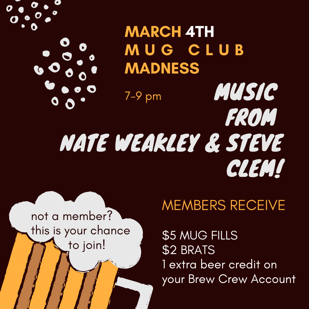 MEMBERS RECEIVE $5 MUG FILLS $2 BRATS 1 extra beer credit on your Brew Crew Account Date 03/04/2020 - 03/04/2020 Time 7-9pm Location Leavenworth Ski Hill