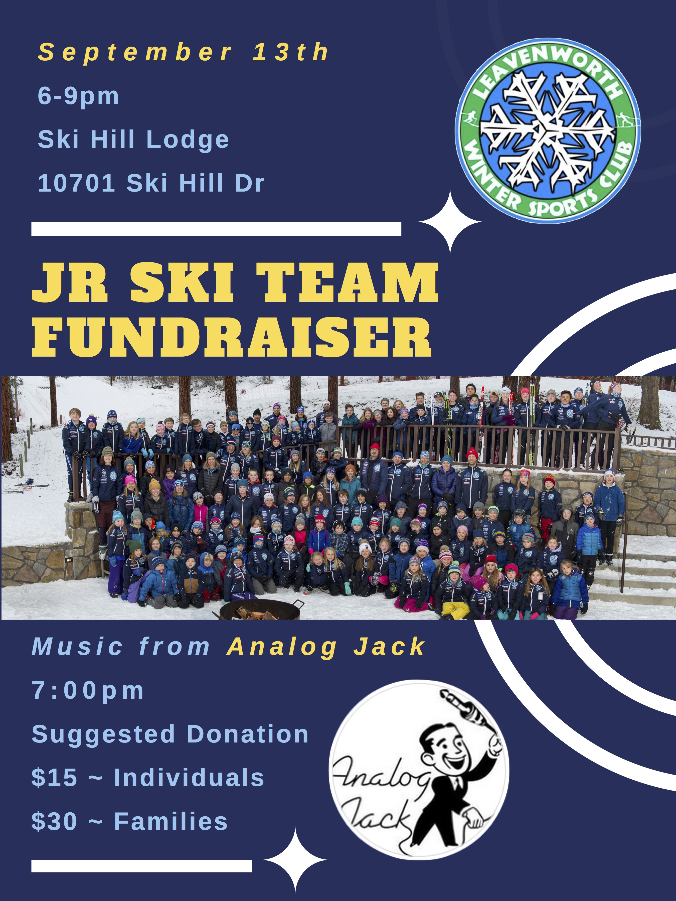 A portion of the Lodge food and beverage sales will go to the Jr. Ski Teams,
